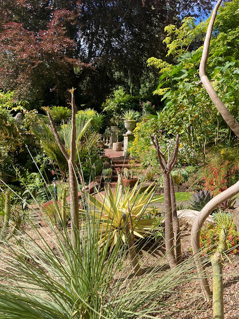Beyond the redwoods is a xeric garden full of Yuccas, agaves and other succulents...