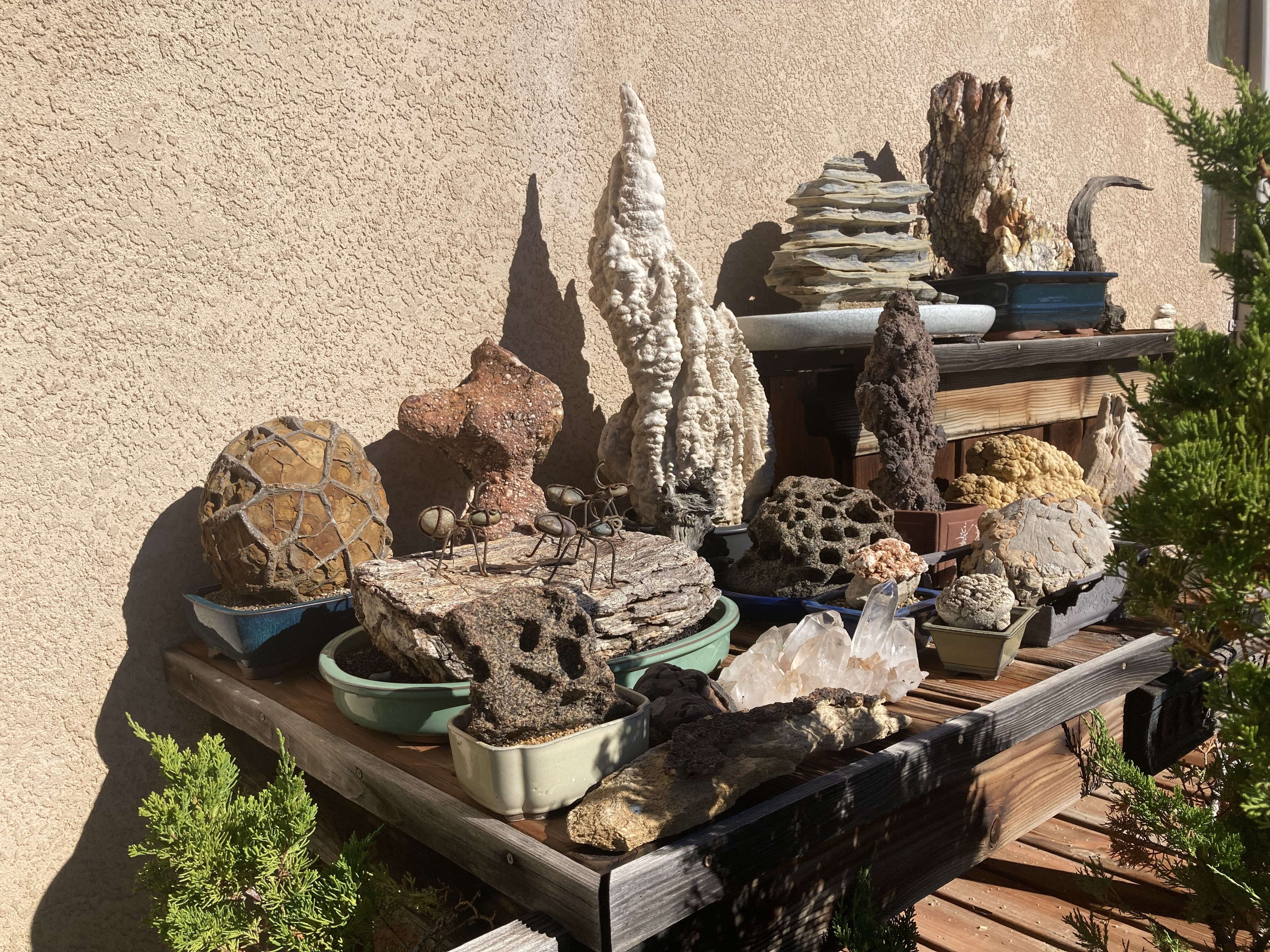 He's accumulated an extraordinary wealth of rocks, containers, plants, soil, top dressing. He was embarrassed at how excited I was to peruse and look through it--it's his laboratory and not meant for visitors!